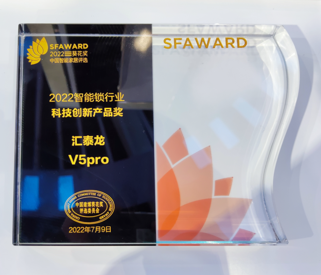 匯泰龍V5Pro獲“2022智能鎖行業(yè)科技創(chuàng)新產品獎”