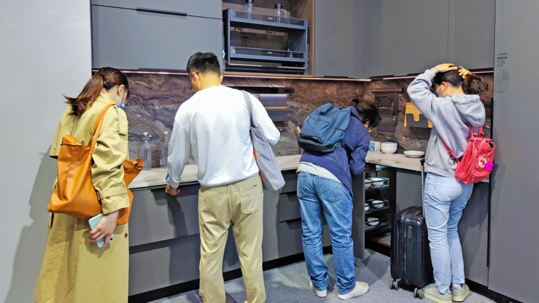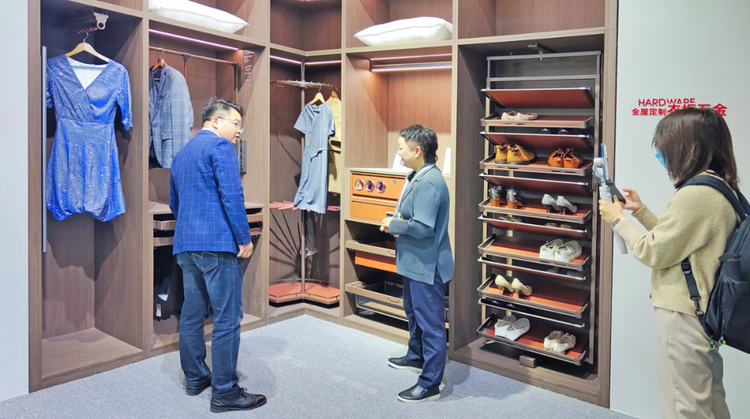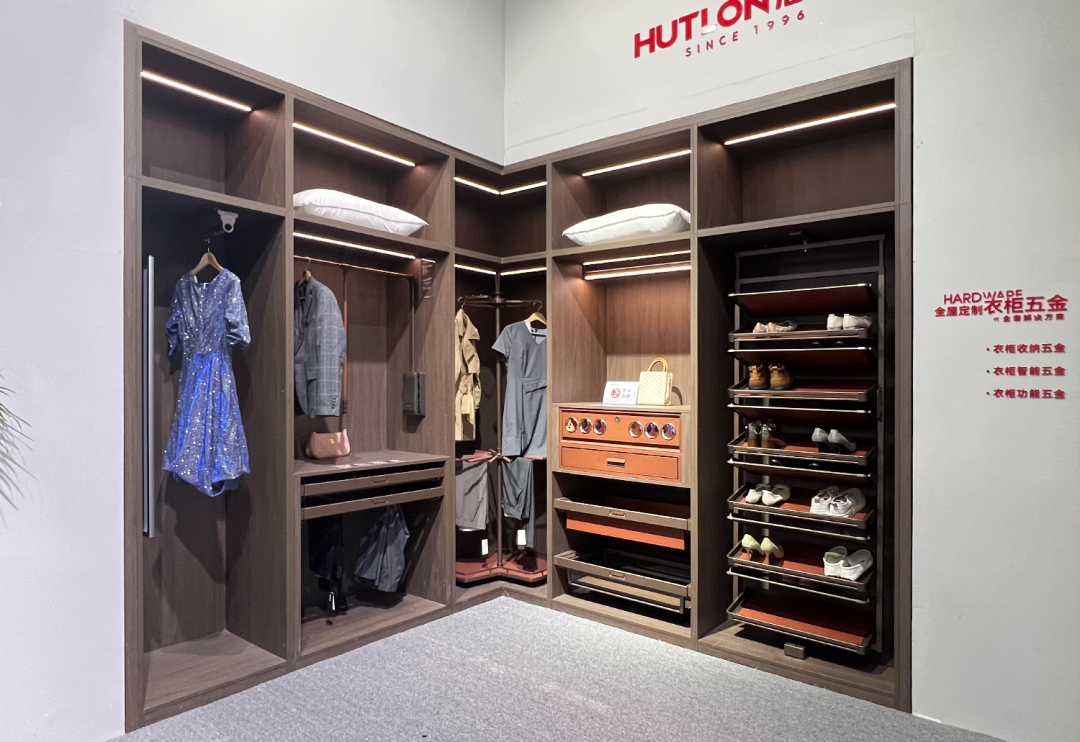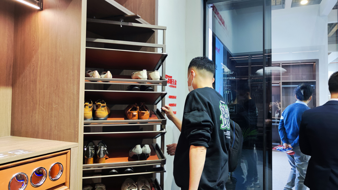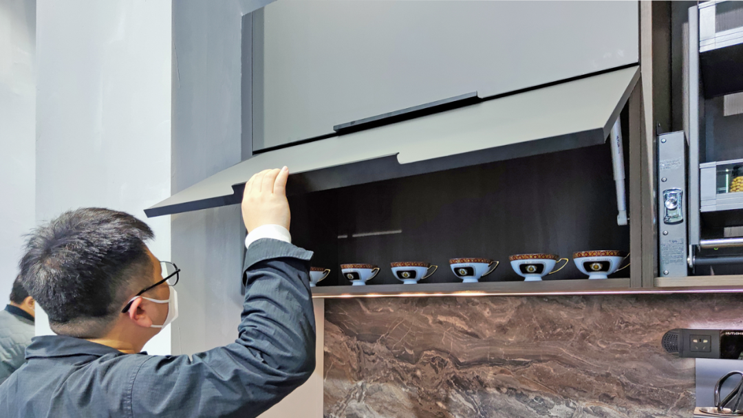 匯泰龍展館里,智能五金也融入到了廚房和衣帽間場景中。語音智能升降機,手指觸控/語音識別,吊柜平穩(wěn)升降;智能百葉柜,手輕觸,百葉門扇向上打開,讓吊柜門開合更貼心;集紫外線殺菌、柔風加熱去潮、超聲波驅蟲等功能于一體的衣柜寶套裝,讓衣物更為整潔干凈;智能感應燈光,照亮櫥衣柜的每一處,讓每一樣物品都清晰可見……乘科技之風,讓生活更美好。