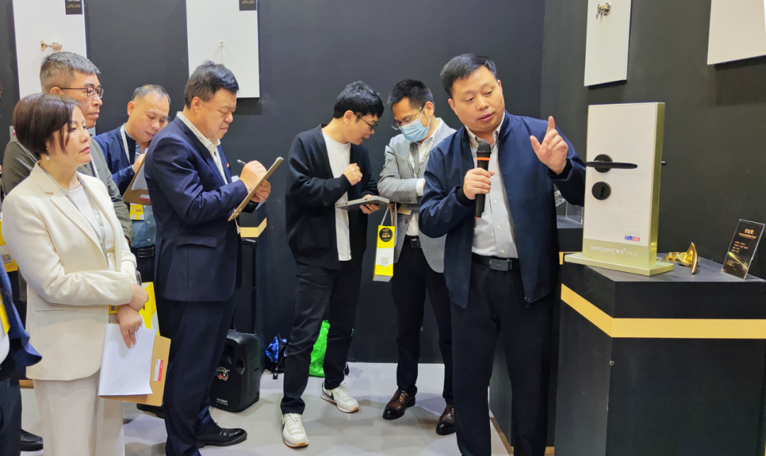 值得一提的是,匯泰龍”悄悄鎖”還亮相主辦方設立的金定獎入圍展示區(qū)。27日早,匯泰龍五金研發(fā)部總監(jiān)張學勤為評審團和觀眾介紹時,贏得了大家的關注和點贊。