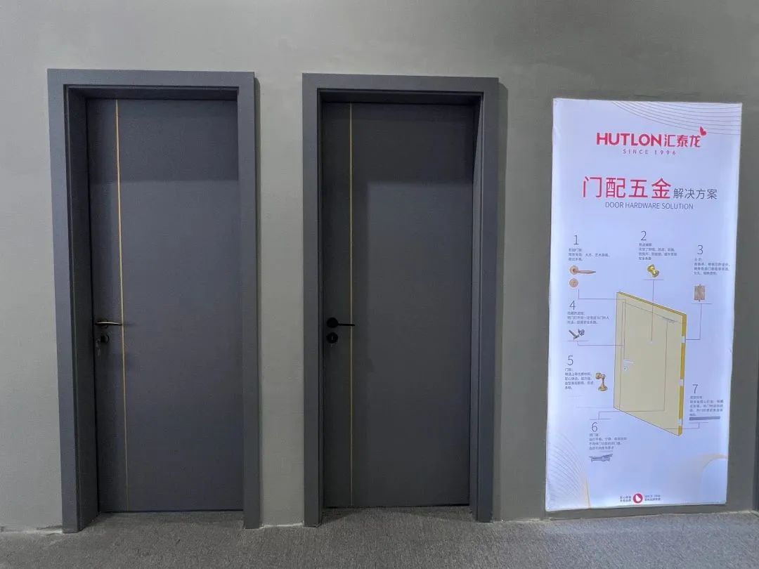 門五金展示區(qū),匯泰龍把門五金產品融入到場景中,讓客商可以上手體驗,形成感官記憶。