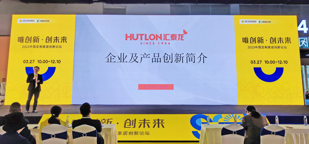 展會首日,匯泰龍全屋五金營銷總經理蔣海憑還受主辦方的邀請,在2023中國定制家居創(chuàng)新論壇上發(fā)表演講。