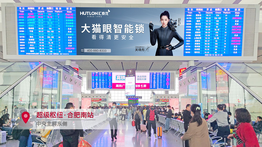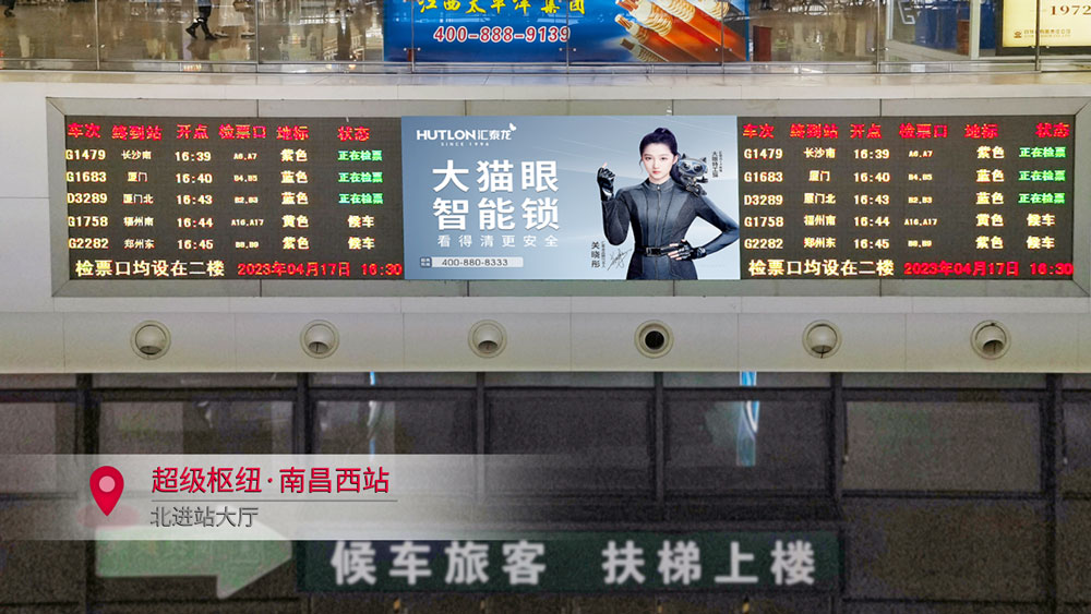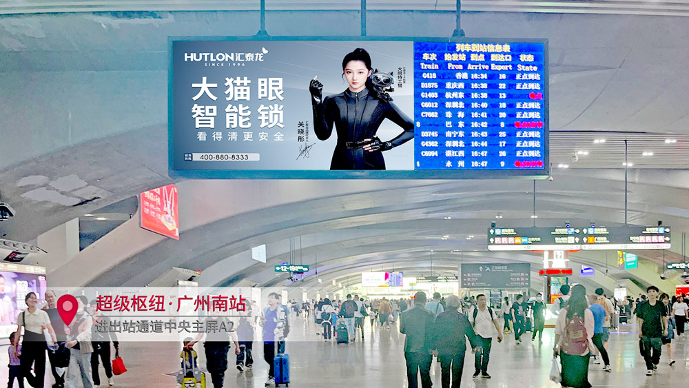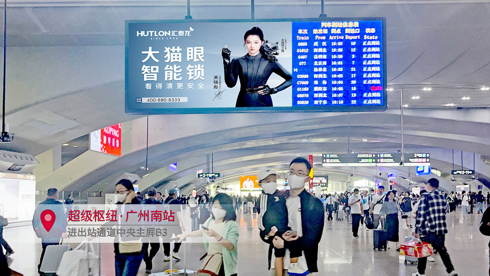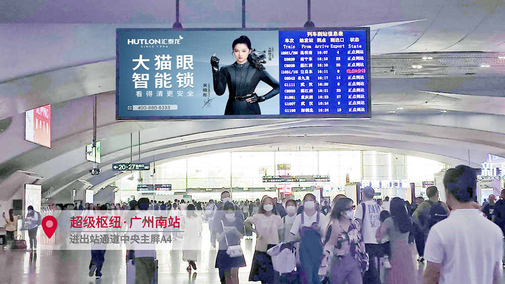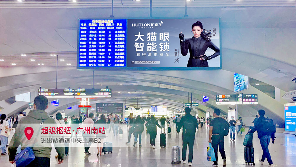 本次高鐵站廣告展示“大貓眼智能鎖,看得清,更安全”的slogan,"大眼特工貓"與匯泰龍品牌代言人關(guān)曉彤,形成雙IP加持,助推爆品營(yíng)銷。◇ 覆蓋13個(gè)城市,數(shù)十個(gè)點(diǎn)位,覆蓋旅游熱門城市,打造震撼品牌曝光!◇ 高效曝光。投放媒體位于地標(biāo)大屏、中央主屏、候車大廳、出站大廳、服務(wù)臺(tái)等地方,位于游客途徑、顯示班次的地方,流量大、醒目!