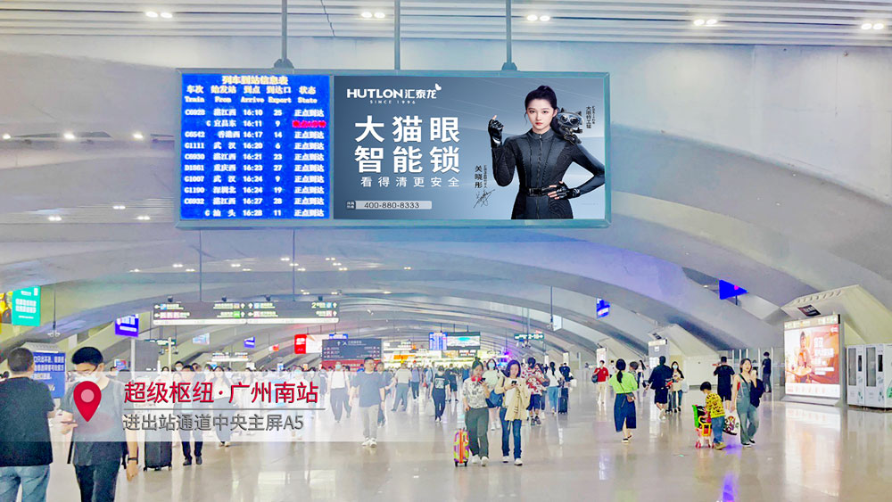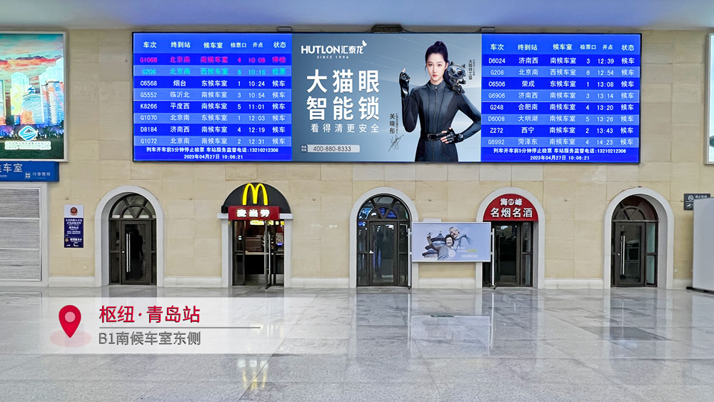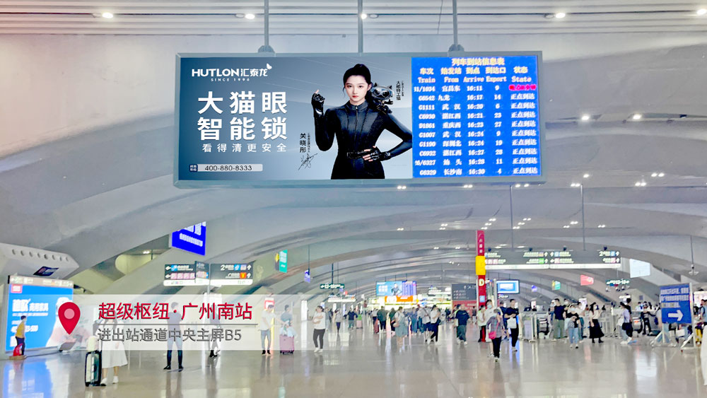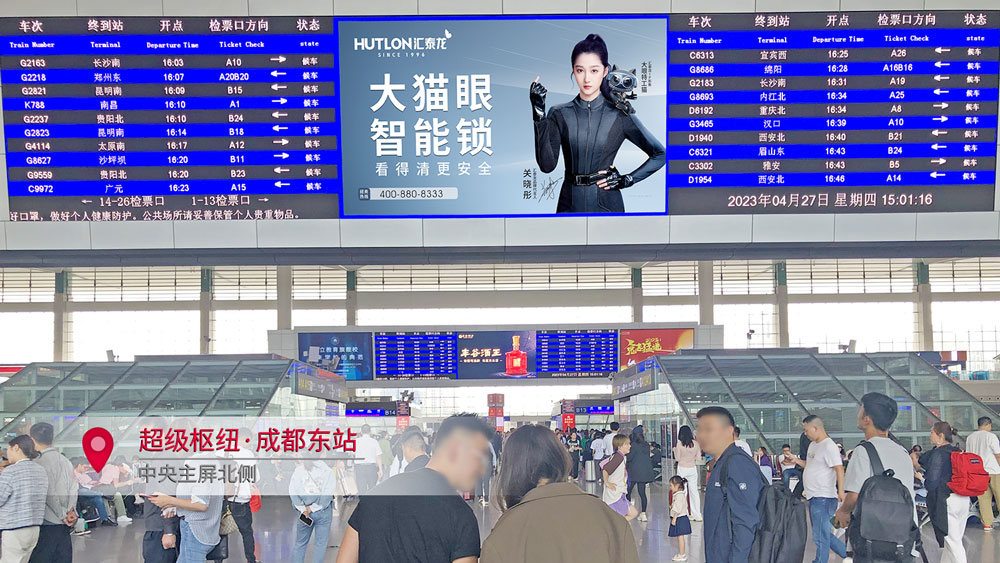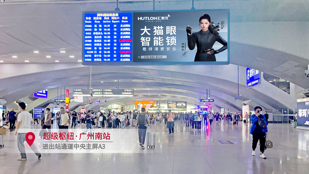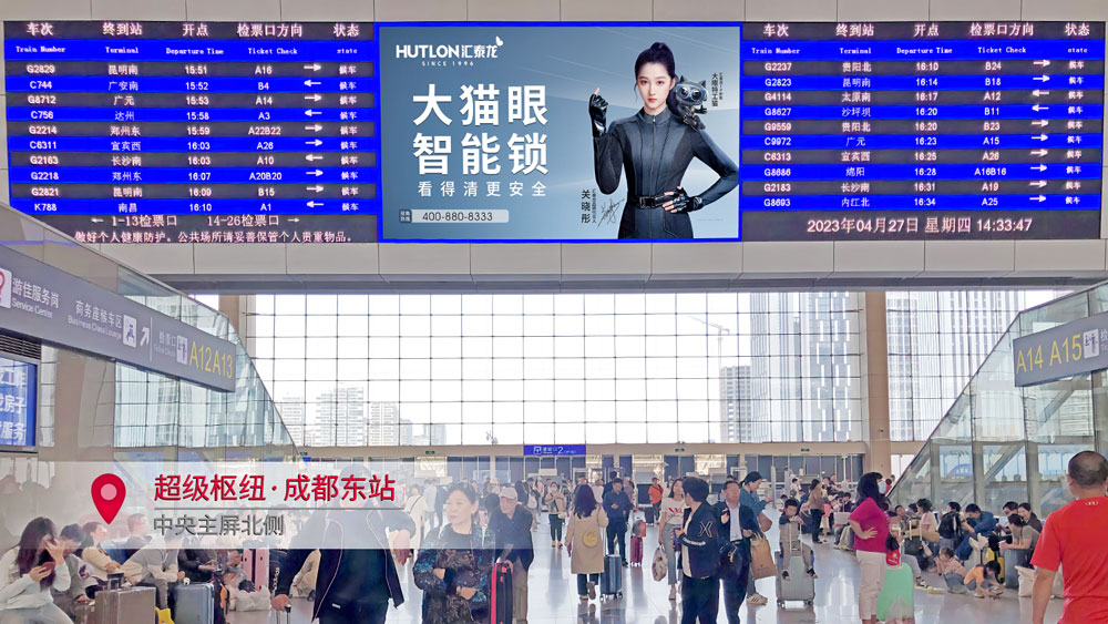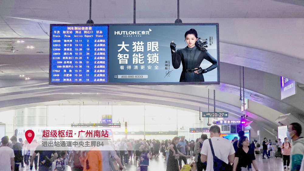 本次高鐵站廣告展示“大貓眼智能鎖,看得清,更安全”的slogan,"大眼特工貓"與匯泰龍品牌代言人關(guān)曉彤,形成雙IP加持,助推爆品營(yíng)銷。◇ 覆蓋13個(gè)城市,數(shù)十個(gè)點(diǎn)位,覆蓋旅游熱門城市,打造震撼品牌曝光!◇ 高效曝光。投放媒體位于地標(biāo)大屏、中央主屏、候車大廳、出站大廳、服務(wù)臺(tái)等地方,位于游客途徑、顯示班次的地方,流量大、醒目!