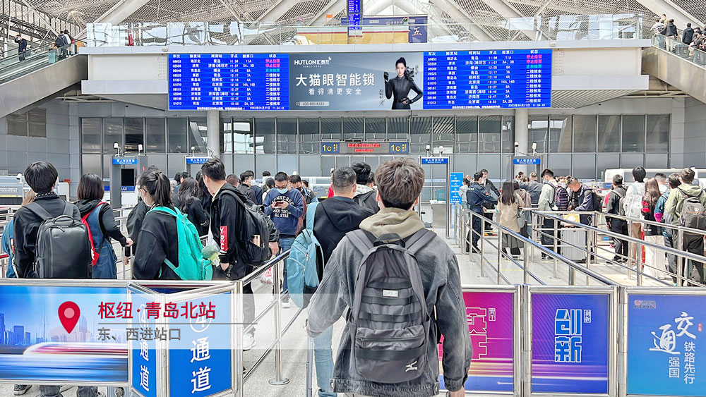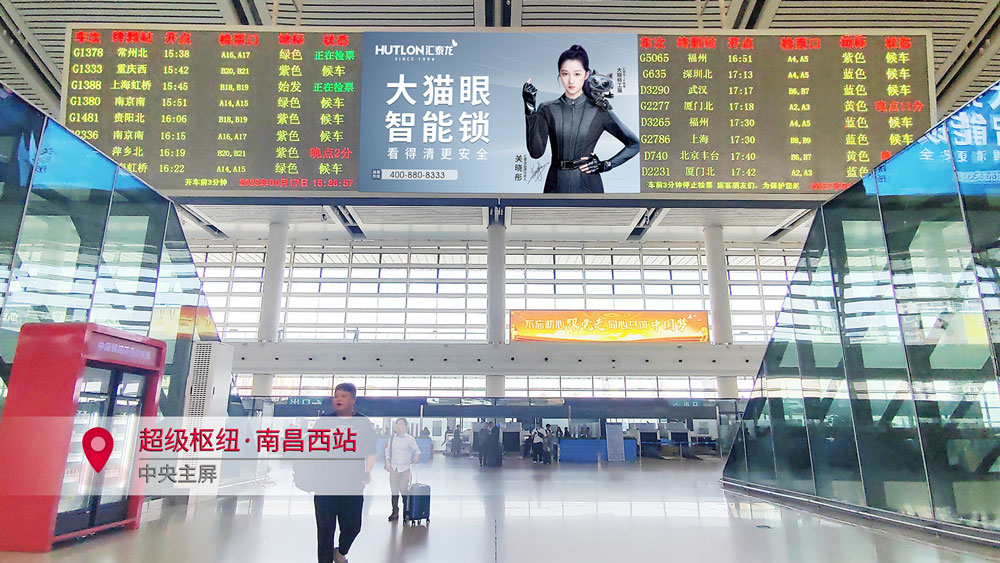 匯泰龍智能門鎖在廣州、上海、合肥、成都、杭州、南昌、青島、長(zhǎng)沙、無錫、濟(jì)南、鄭州、福州、西安等五一長(zhǎng)假熱門旅游城市城市的高鐵站投放高鐵站廣告,吸引不少游客打卡。