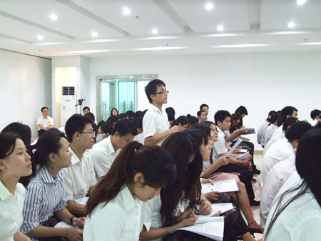 5月20日18:00,所有參與培訓(xùn)人員準時來到培訓(xùn)會場——裝修一新的新基地五樓多功能會議廳。經(jīng)主持人簡要作培訓(xùn)活動說明以后培訓(xùn)正式開始。馮崇恩先生利用三個小時的時間向?qū)W員講解了:產(chǎn)品的生產(chǎn)工藝;產(chǎn)品的工作原理;重點產(chǎn)品的分析;產(chǎn)品使用的注意事項;產(chǎn)品的優(yōu)特點等。培訓(xùn)課程采用現(xiàn)代多媒體技術(shù),圖片、影像、圖解結(jié)合現(xiàn)場產(chǎn)品展示,使整個培訓(xùn)過程生動直觀,另外,馮老師隨機點名與學員互動,了解學員對產(chǎn)品知識的掌握程度和提出相關(guān)專業(yè)問題,啟發(fā)學員思考,整個培訓(xùn)過程在良好的學習氛圍下進行。