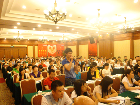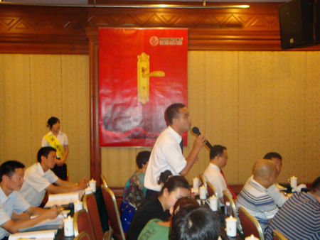 7月7日上午8:00,廣州華夏大酒店三樓會議廳內(nèi)一片喜慶的景象。紅色的地毯、紅色的匯泰龍主題背景、紅色的文化宣傳畫交相輝映,把整個會議廳的氣氛渲染得熱烈而喜慶。走進(jìn)會議廳內(nèi),三百個擺放整齊的座位,無一虛席,大型的主題背景上赫然印著“匯泰龍門店銷售與管理技巧培訓(xùn)”的主題大字。匯泰龍全國經(jīng)銷商大型培訓(xùn)正在此舉行。
