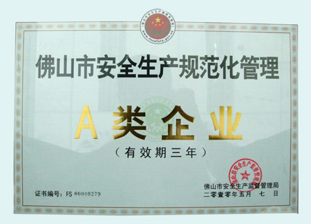 專家組自2009年10月對我司安全生產(chǎn)規(guī)范化管理工作作綜合評估,對我司安全生產(chǎn)管理相關(guān)的記錄資料進(jìn)行了詳細(xì)的審核,同時(shí)專家組也親臨生產(chǎn)現(xiàn)場進(jìn)行了嚴(yán)謹(jǐn)?shù)陌踩a(chǎn)工作考察,并且現(xiàn)場宣布了評定我司為佛山市安全生產(chǎn)規(guī)范化管理A類企業(yè)審核。