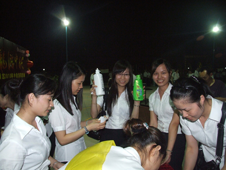 對匯泰龍公司的員工來說,9月29日的夜晚,這是個充滿激情和歡樂的夜。匯泰龍佛山南海公司的廣場上燈火通明,人聲鼎沸。火紅的燈籠掛滿了廣州的整個角落,紅色的燈籠、紅色的綢帶、紅色的主題背景……一片紅色的主色調(diào)和著歡快悠揚的樂曲,烘托出喜慶和吉祥的節(jié)日氣氛。柔和的燈光照在每一位員工的臉上,顯露出歡樂和幸福的笑容,全體匯泰龍同事聚集在這里參加“慶中秋,迎國慶”中秋游園活動。