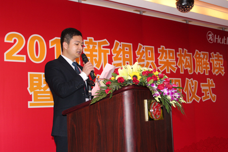 此次會議由六部分組成:董事長陳鴻填先生講話;總經(jīng)理任命儀式;各中心、事業(yè)部、分公司任命儀式;新任總經(jīng)理就職演講;中心總監(jiān)代表講話;專家顧問作新架構(gòu)職能解讀。