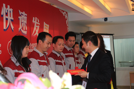 董事長(zhǎng)和總經(jīng)理發(fā)言后,在此次開(kāi)工大會(huì)上對(duì)2010年度評(píng)選出的優(yōu)秀員工和執(zhí)行力標(biāo)兵頒發(fā)了榮譽(yù)證書(shū)和獎(jiǎng)勵(lì)。本次共評(píng)選出執(zhí)行力標(biāo)兵15人,優(yōu)秀員工49人,由董事長(zhǎng)和總經(jīng)理分別對(duì)獲獎(jiǎng)人員頒發(fā)榮譽(yù)證書(shū)。