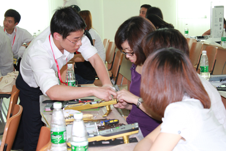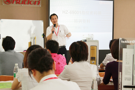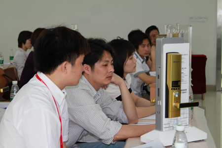 此次的培訓(xùn)分為多個(gè)板塊,分別為:智能鎖市場分析;匯泰龍新產(chǎn)品介紹;操作使用;安裝與調(diào)試;售后服務(wù)。培訓(xùn)采用幻燈片演示以及現(xiàn)場實(shí)操演練相結(jié)合,直觀地再現(xiàn)了匯泰龍智能電子門鎖內(nèi)部結(jié)構(gòu)和性能特點(diǎn),從大家的自由的討論中總結(jié)匯泰龍新款智能電子鎖的優(yōu)勢:360度指紋識(shí)別、啟動(dòng)時(shí)間不到1秒、時(shí)尚的產(chǎn)品外觀設(shè)計(jì)、雙核雙電路設(shè)計(jì)等,在實(shí)操部分,大