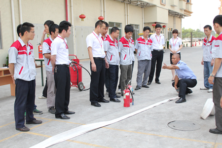 2011年5月18日下午3點,匯泰龍行政管理部組織了消防滅火演習,現(xiàn)場安排了多名保安人員和生產基地各車間和部門負責人參加,行政中心總監(jiān)任志平先生在現(xiàn)場作了培訓的宣導和觀摩。在這次消防演練分為干粉滅火器演練與打消防水帶操作演練。通過演習,增強員工的消防意識,讓參與的每個人都能從中學到知識,“知火險”“知報警”“知救助”“知滅火方法”,每個人都有所收獲。同時,也增強了保安員和崗位責任人的消防技能,為今后的消防滅火工作積累經驗。