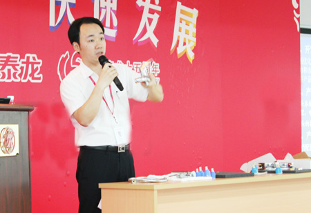 在培訓(xùn)課上,黃鎮(zhèn)懷先生從產(chǎn)品的種類、名稱、用途開(kāi)始,然后講解了衛(wèi)浴產(chǎn)品,特別是水龍頭和花灑的內(nèi)部核心結(jié)構(gòu)閥芯和網(wǎng)嘴、工藝特色、生產(chǎn)材料的區(qū)分等方面作了講解和展示,讓全體學(xué)員更深入地了解和專業(yè)的產(chǎn)品知識(shí),課中講授的匯泰龍水龍頭、花灑的十大特色更讓在場(chǎng)的學(xué)員認(rèn)識(shí)到匯泰龍產(chǎn)品的獨(dú)特優(yōu)勢(shì)。