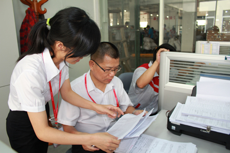 內(nèi)審員正在作審核記錄,各部門積極配合