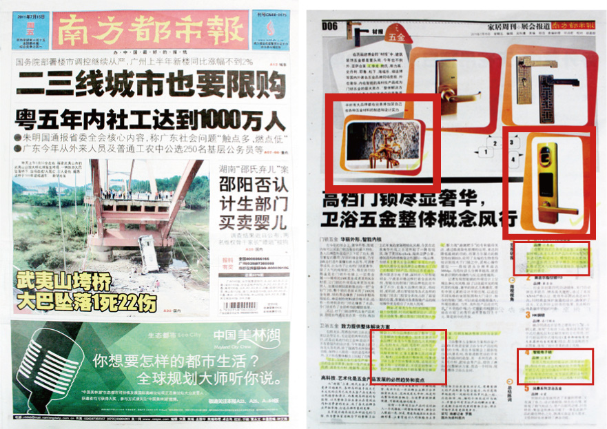 《南方都市報》:高檔門鎖盡顯奢華 衛(wèi)浴五金整體觀念風(fēng)行