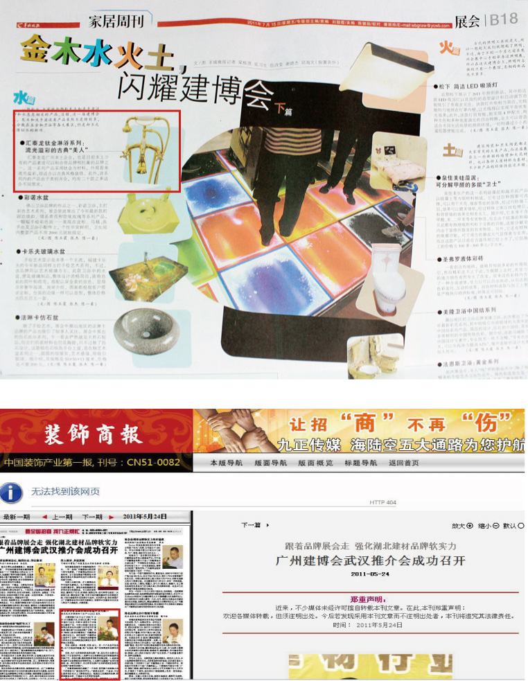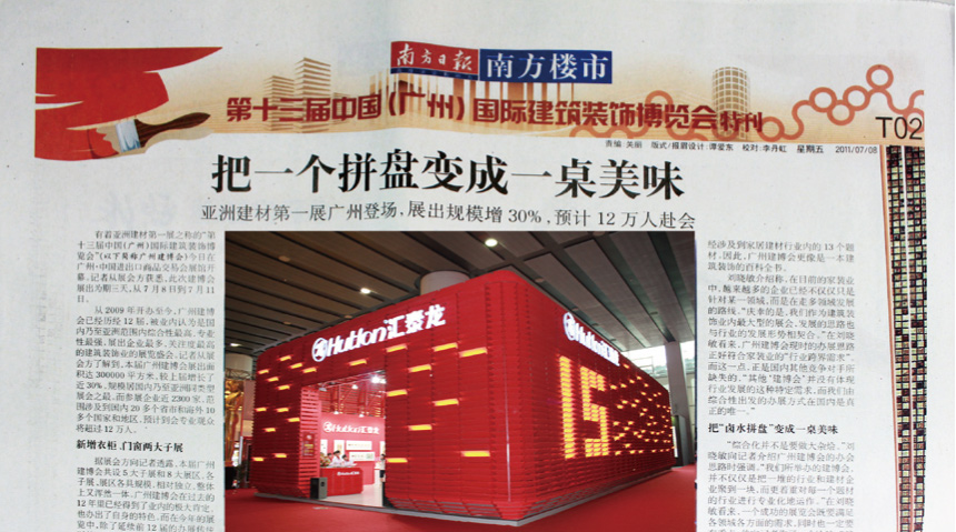 《裝飾商報》摘自陳董在建博會武漢推介會上的講話:作為廣州建博會一名忠誠的合作伙伴,作為一個全國知名的五金衛(wèi)浴品牌,匯泰龍一直努力打造匯泰龍夯實的企業(yè)文化與品牌文化。……置身于這劇烈的國際性市場當(dāng)中,已有十五年歷史的匯泰龍五金衛(wèi)浴深知,有品牌才有世界地位!……