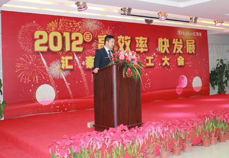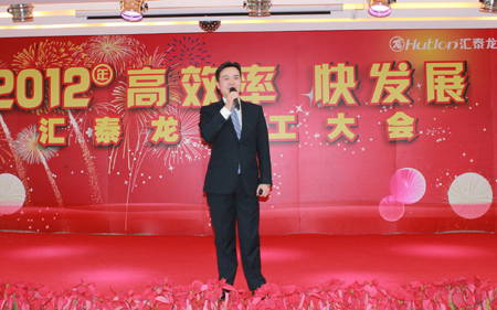 在徐總講話結(jié)束后,董事長(zhǎng)陳鴻填先生也受邀發(fā)表了演講。陳董首先對(duì)匯泰龍公司全體人員2011年共同努力取得的成績(jī)表示了肯定,對(duì)公司2012年在各項(xiàng)資源投入作出說(shuō)明,提出了2012年第二個(gè)效率年“高效率 快發(fā)展“的企業(yè)文化主題和新的定義,提出了全體匯泰龍人保持激情的重要性,最后,陳董對(duì)公司的團(tuán)隊(duì)建設(shè)、業(yè)績(jī)、營(yíng)銷(xiāo)等方面提出了展望。