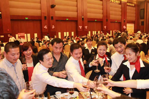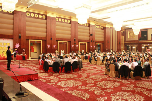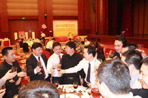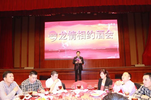 3月20日17:00,在全國經(jīng)銷商陸續(xù)到達(dá)廣東佛山三水綠湖酒店后,大家共同合影留下了美好的全家福大合影。隨即,龍情相約酒會開始。酒會現(xiàn)場,公司董事長陳鴻填先生在激昂喜慶的音樂聲中走上主題背景臺,發(fā)表了熱情洋溢的祝酒詞。他首先表達(dá)了對經(jīng)銷商遠(yuǎn)道而來的熱烈歡迎,接著向大家總體介紹了匯泰龍2011年在行業(yè)內(nèi)取得的突出成績,最后,陳董表達(dá)了全體經(jīng)銷商共同攜手、相互合作、共創(chuàng)佳績的愿望。酒會中,陳董、徐總以及匯泰龍高層管理團隊一同輪流向每一桌遠(yuǎn)道而來的經(jīng)銷商祝酒,整場酒會氣氛溫馨,經(jīng)銷商們舉杯同慶,在相互的祝愿和經(jīng)驗交流中,將酒會氣氛一次次推向了高潮。