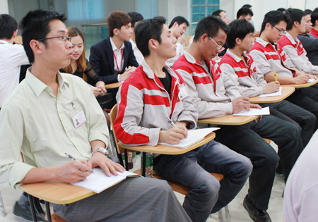 在第二天的衛(wèi)浴產(chǎn)品知識培訓(xùn)中,張總監(jiān)又從衛(wèi)浴產(chǎn)品結(jié)構(gòu)、產(chǎn)品工作原理、產(chǎn)品分析等幾個方面講解,利用圖解深度剖析每一類產(chǎn)品的工作原理,甚至包括零件中每一個墊圈的材質(zhì)、安裝方法、功能這些細(xì)節(jié)都作了講解,學(xué)員認(rèn)真地聽,認(rèn)真地記。培訓(xùn)取得了良好的培訓(xùn)效果。
