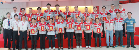 4月13日,匯泰龍佛山南海生產(chǎn)基地辦公樓五樓會議廳聲樂交響、燈火通明,匯泰龍2012年度第一季度優(yōu)秀員工(七級員工)表彰大會隆重召開。公司人事行政中心總監(jiān)任志平先生、制造中心總監(jiān)莫志金先生、制造中心各部門經(jīng)理、車間主任及優(yōu)秀員工到會,會議上任總監(jiān)首先發(fā)表了講話,他在演講中提到,一個優(yōu)秀的企業(yè)離不開每一個優(yōu)秀的團隊,優(yōu)秀的團隊的品質(zhì)必須由每一位優(yōu)秀品質(zhì)的員工才能體現(xiàn),受表彰的幾位優(yōu)秀員工在平凡的崗位上兢兢業(yè)業(yè),足以成為匯泰龍人學習的榜樣,接著他宣讀了《2012年度第一季度優(yōu)秀員工名單》,公司領導對這些經(jīng)民主投票評選出的優(yōu)秀員工進行頒發(fā)榮譽證書并進行表彰,獲獎員工董梅、易光俊代表全體優(yōu)秀員工發(fā)言,最后,所有嘉賓與優(yōu)秀員工合影留念。表彰大會氣氛熱烈,在圓滿完成會議議程之后,表彰大會隆重閉幕。